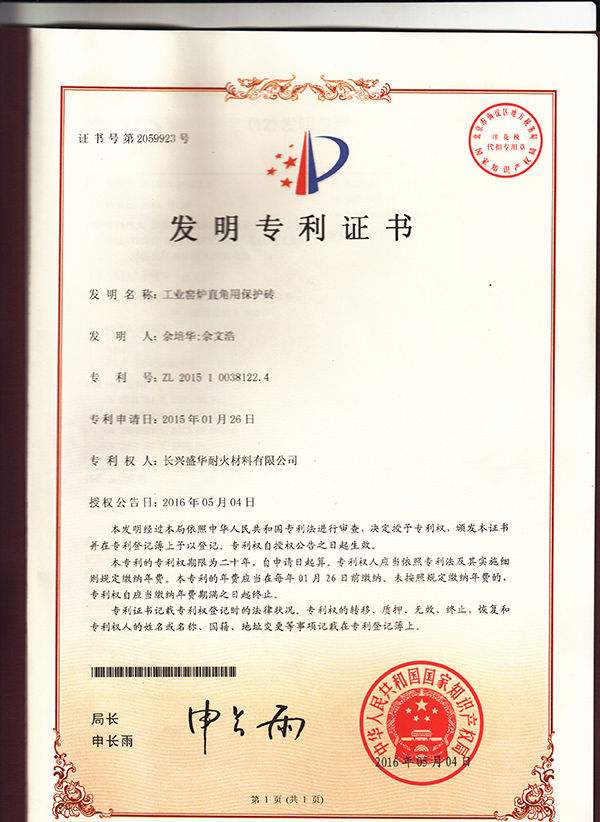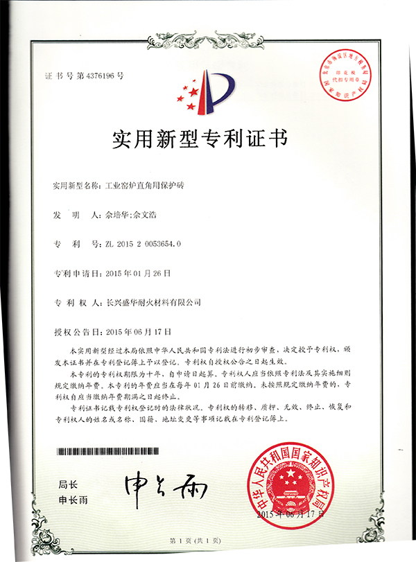 直角用保护砖发明专利证书